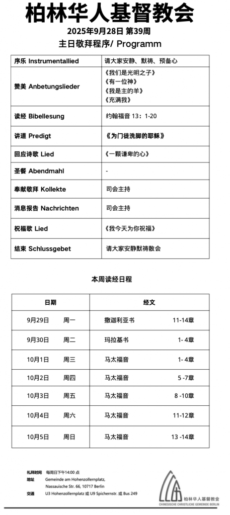 2025年9月28日 主日信息