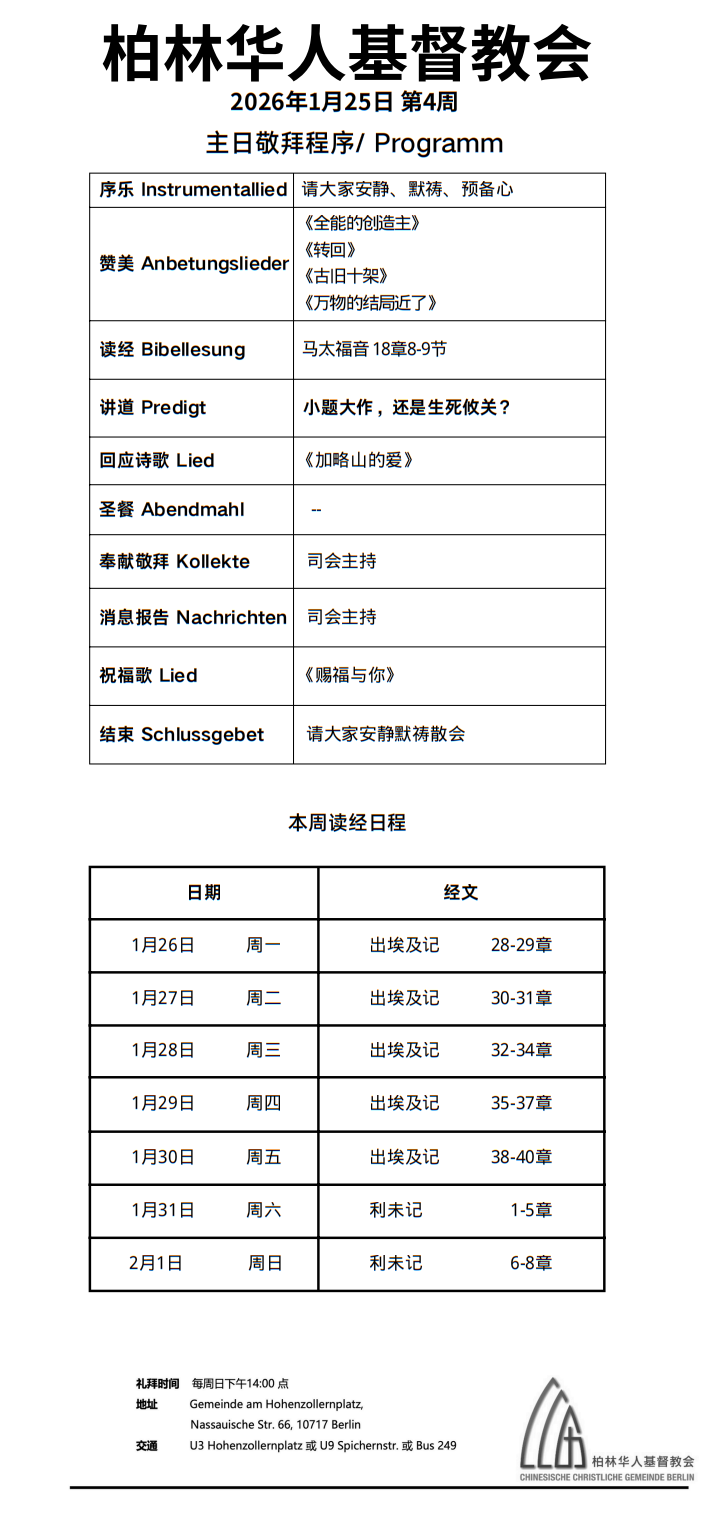 2026年1月25日 主日信息